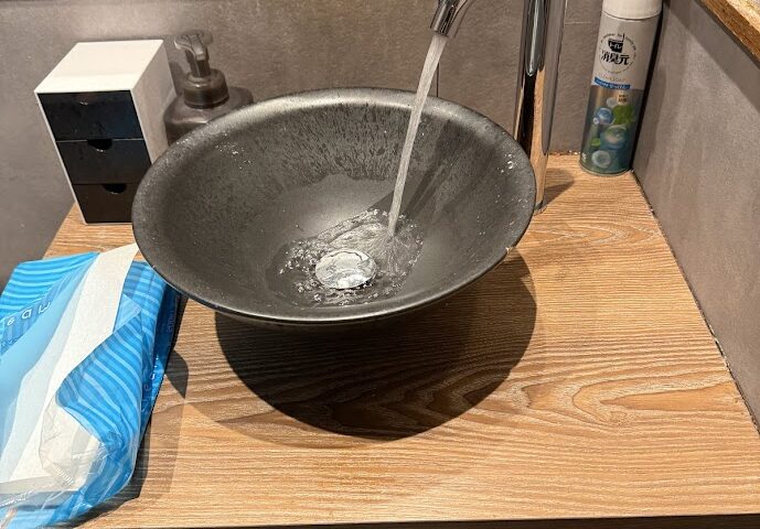 大阪府大阪市中央区某店舗トイレ手洗い水栓カクダイ立水栓(トール)716-277交換工事及び排水トラップパッキン交換工事