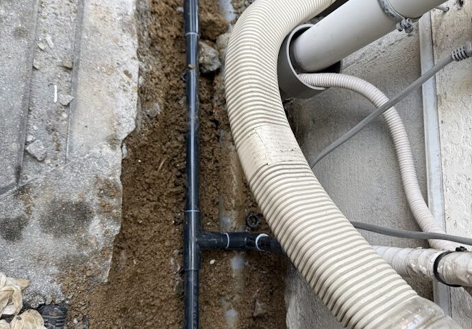 悪い箇所の手前のパイプを切断し配管工事(HIVP管)