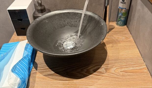 大阪府大阪市中央区某店舗トイレ手洗い水栓カクダイ立水栓(トール)716-277交換工事及び排水トラップパッキン交換工事